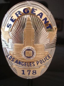 Dato Loco: La placa que aparece en la foto es la que usó originalmente Joseph Wambaugh (el mentor de James Ellroy) durante sus años de servicio en el departamento de Los Ángeles.