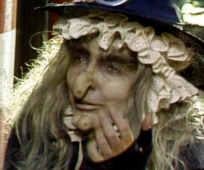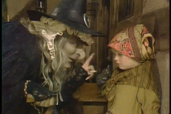 Collins acá interpreta dos papeles. La madrastra que maltrata a los niños y se los quiere sacar de encima y la famosa bruja caníbal.