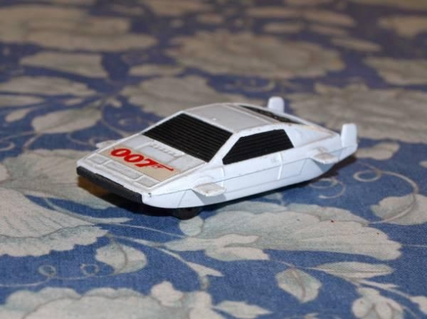 El autito venía con los alerones del submarino y en el capó tenía el logo clásico de 007, como se puede ver en la foto.