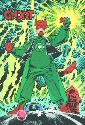 Para quienes no lo conocen, Gnort es un perro humanoide que pertenece al grupo de los Green Lantern Corps.