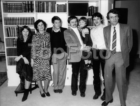 Escapes and escape attempts from East Germany    Escape of the Strelzyk family by a self-made hot-air balloon from Thuringia, East Germany, to Bavaria in 1979 - Picture of the Strelzyk and Wetzel families with the leading actor of the movie ‘Night Crossing’,  f.l.t.r.: Petra Wetzel, Doris Strelzyk, actor John Hurt, Günter Wetzel with son Andre, Frank and Peter Strelzyk - date around 1982